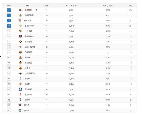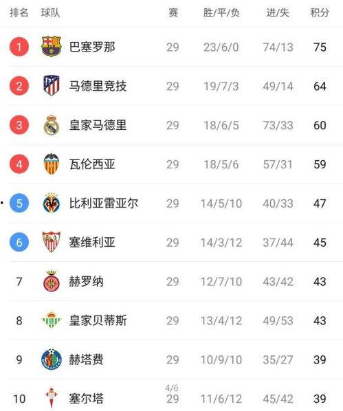 在最新的西甲积分榜上,巴塞罗那、皇家马德里和马德里竞技三强依然稳居前三,但其他球队的竞争却异常激烈。让我们一起来看看这些球队的最新动态。